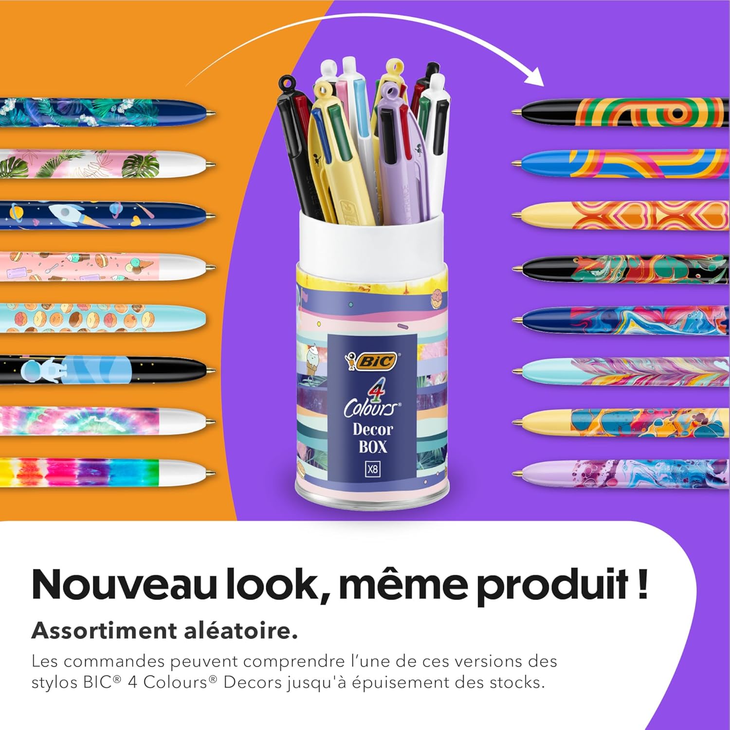 Express your every mood with this reusable tin containing 8 pens BIC Message Box 4 different colors, stamped with trendy messages. These retractable ballpoint pens revisit the iconic pen BIC 4 colors in a fun and modern way. Full of freshness and optimism, this set encourages positive expression with 8 different messages I am a Unicorn, You Rock, Dreamer, I am a Princess, Be a Hero, Fabulous, Catpower, and BFF. The practical storage box can decorate your desk or be used as a nice pen holder. A wonderful gift for any occasion! Taking notes, drawing or creating a colorful bullet journal everything is possible thanks to its 4 medium tips (1.0 mm) of blue, red, green and black color. Durable and made in France, these refillable ballpoint pens have an average capacity of 8 km in total each (2 km per tip). A classic BIC dressed in a modern look. NOTE This product comes from the manufacturer in the form of a varied assortment of models and/or colors. It is impossible for us to offer you one of these models and/or specific colors, so you will receive one of them at random (subject to availability).