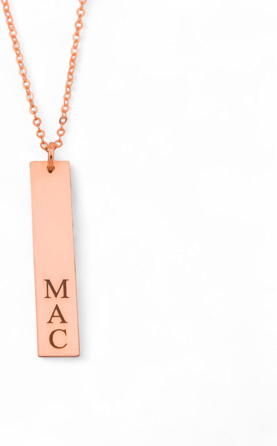 Add your personal touch to this necklace by choosing meaningful custom engravings on the bar pendant. Whether it be a special initial, a cherished name, an important date, roman numerals, or anything else that you want to keep close to your heart- you can choose to engrave onto this necklace. Available in gold, rose gold, or silver, this necklace is the perfect jewelry piece to go along with any outfit for any occassion. A great and meaningful gift for a loved one or a treat for yourself.