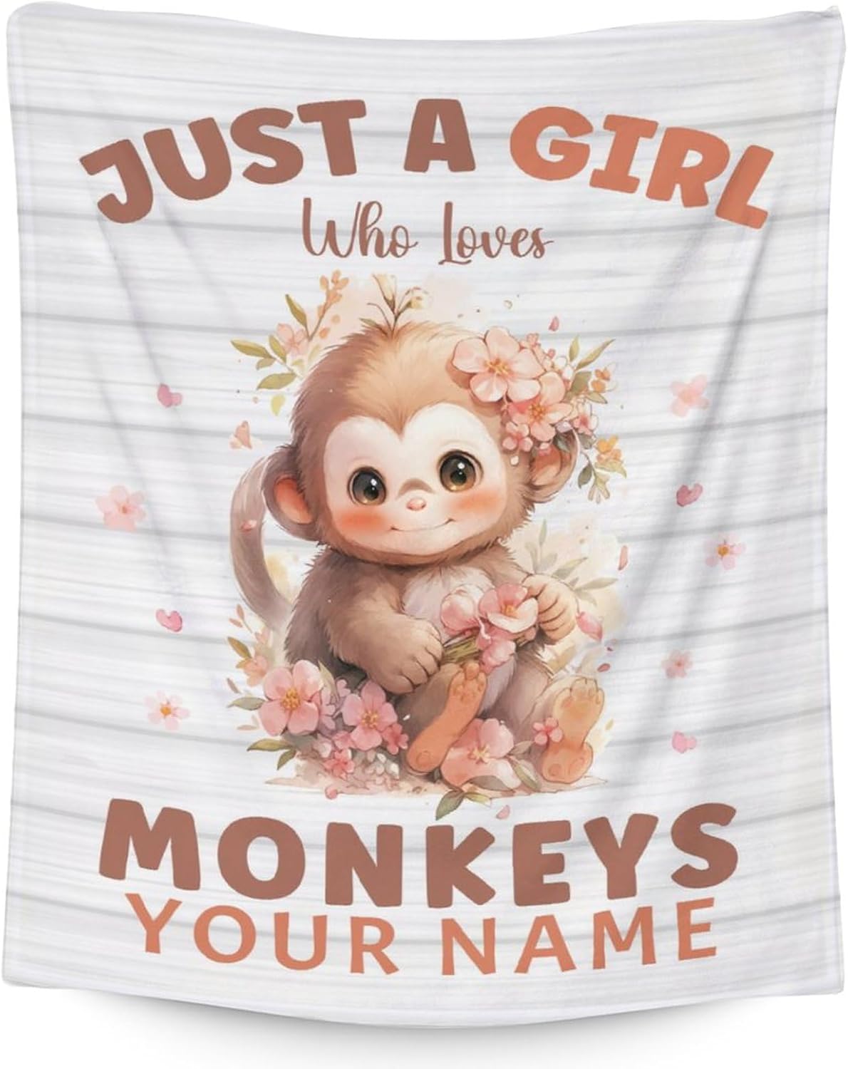 Introducing our Flannel Blanket with a charming monkey graphic, a ideal blend of style and comfort for all ages! Crafted from premium flannel fabric, this blanket offers durability, lightweight warmth, and an array of sizes to cater to your needs.Size Options: Lap Size (30” x 40”): Ideal for draping over your legs during chilly evenings.Crib Size (40” x 50”): Keeps your little one cozy and snug in the crib.Throw Size (50” x 60”): Adds a touch of warmth and style to any sofa or lounge chair.Twin Size (60” x 80”): Ideal for a twin-sized bed, ensuring a comfortable night's sleep.Our Flannel Blanket is designed with your convenience in mind. One side features a vibrant monkey graphic, while the other side is classic white, offering versatility to suit your decor or mood.Outstanding Features:Durable: Crafted to withstand regular use and washing, this blanket is built to last.Lightweight: Enjoy the excellent balance of warmth without feeling heavy or cumbersome.Wrinkle-Resistant: Maintain a polished look without the hassle of ironing.Non-Shedding: Say goodbye to annoying lint or shedding.Cleaning is a breeze – simply toss it in the washing machine for a quick clean or opt for a gentle hand wash. Our Flannel Blanket is easy to care for and will maintain its softness and quality over time.Choose the size that suits your needs and add a touch of warmth and style to your life with our monkey Graphic Flannel Blanket.