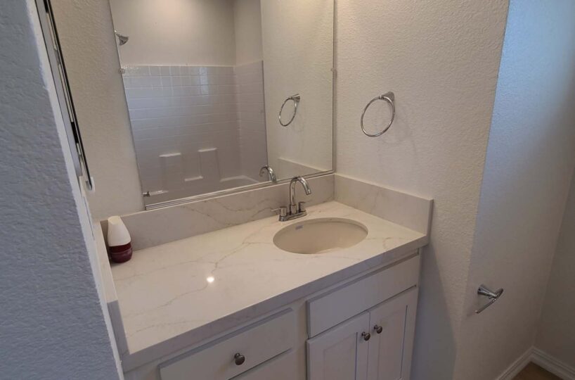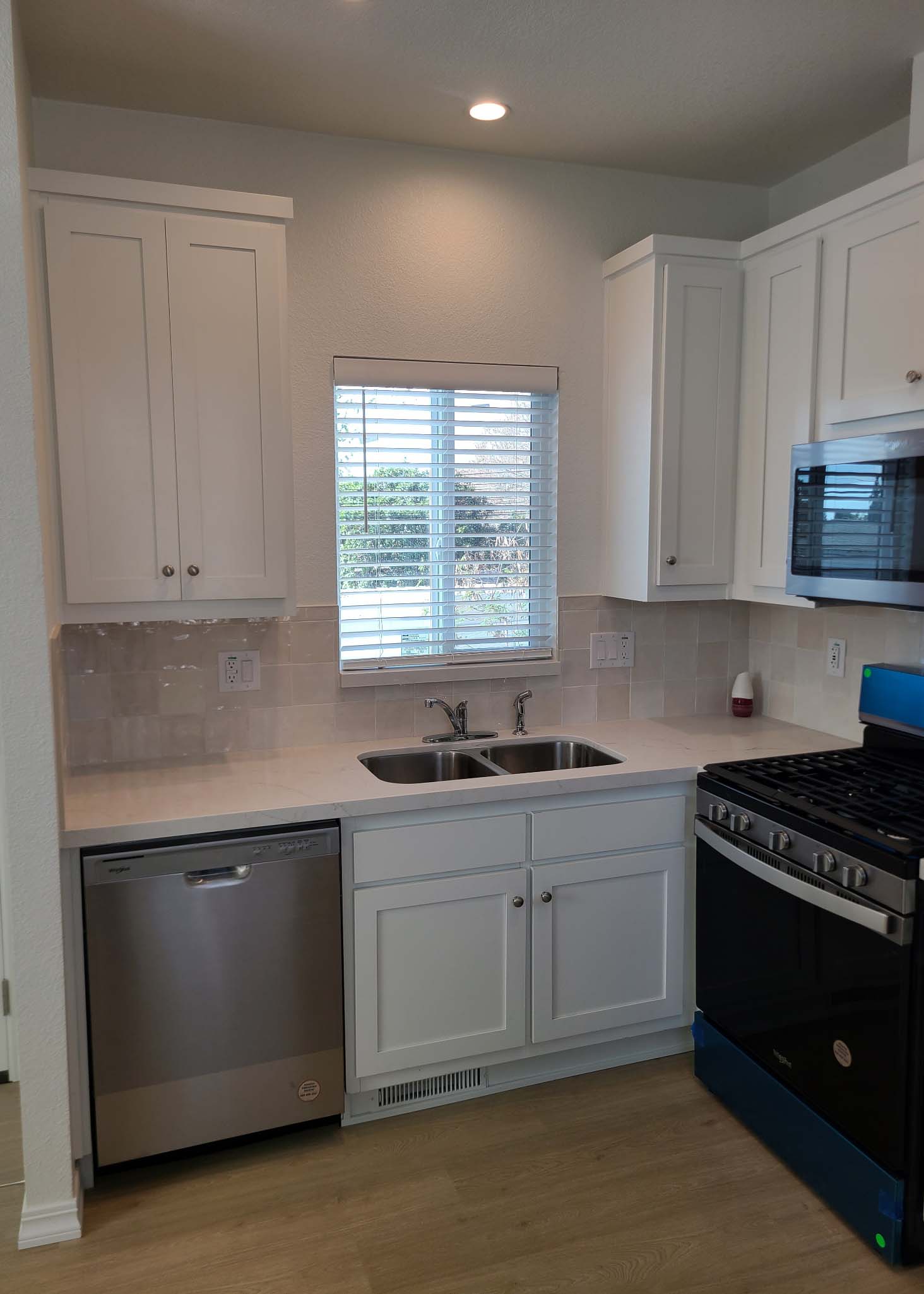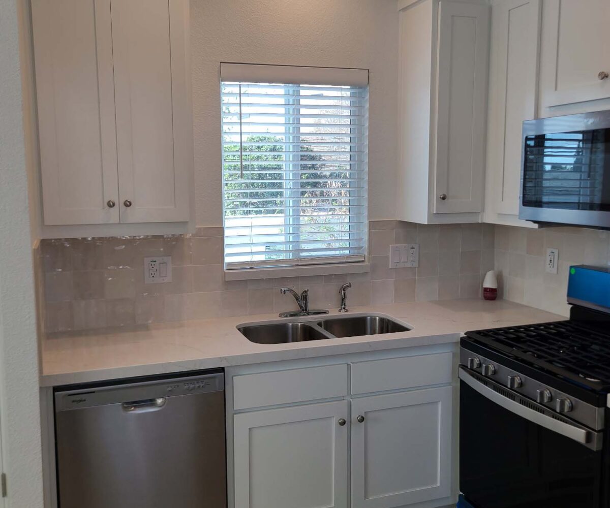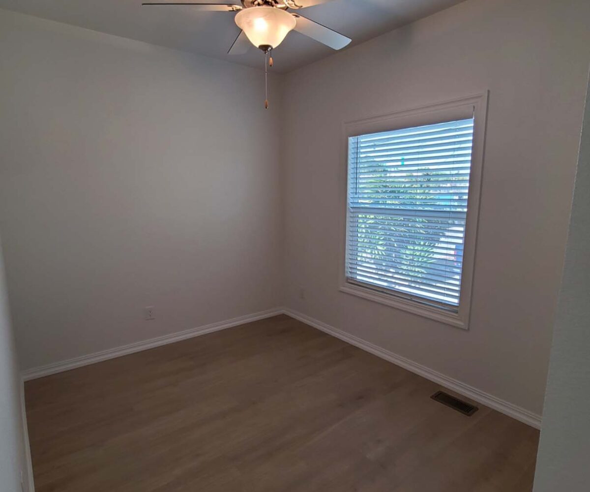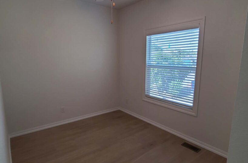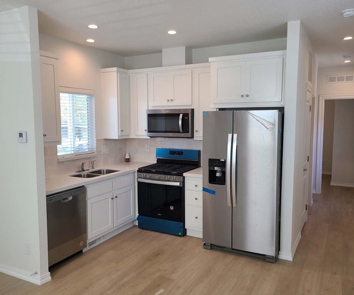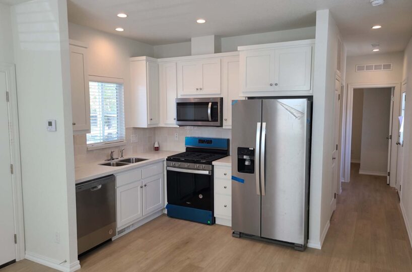 This home is in the all-age, land-leased community of Orange Grove Mobile Home Park in Vista. It has one bedroom and one bathroom with laminate flooring. The home features high 9′ side walls with flat ceilings and recessed lights. The kitchen has stainless steel appliances, quartz countertops, and a ceramic tile backsplash. The cabinets are classic white with brushed nickel hardware and include stackable washer and dryer hookups. The home has a nice, open floor plan with lots of storage and natural light. It’s a must-see!