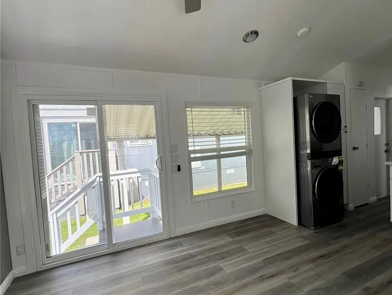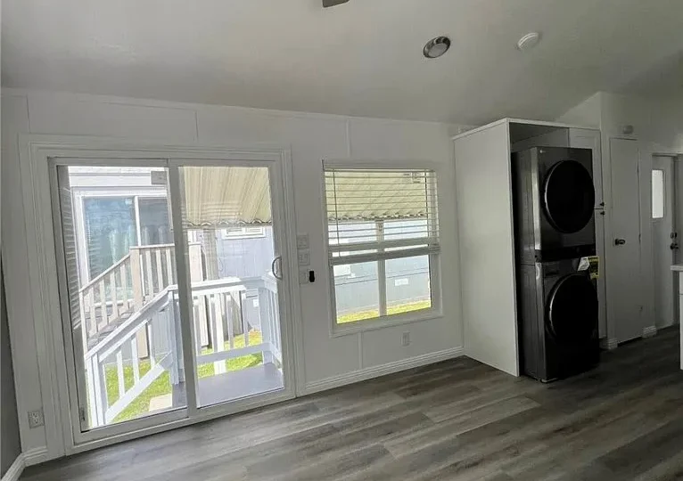 Completely Renovated & Move-In Ready! This beautifully updated 1 bedroom, 1 bathroom home feels brand new from the floors up. Featuring stylish white shaker cabinets, sleek Corian countertops, and a deep single-basin sink with a high-arc faucet. All kitchen appliances are included. Enjoy the convenience of an in-unit washer and dryer. Comfort is covered year-round with a modern mini-split heating and cooling system. Step outside to a cozy covered patio—perfect for relaxing or entertaining. Ideally located near major freeways, shopping centers, and entertainment venues. Community amenities include a sparkling pool and well-maintained grounds. A must-see!