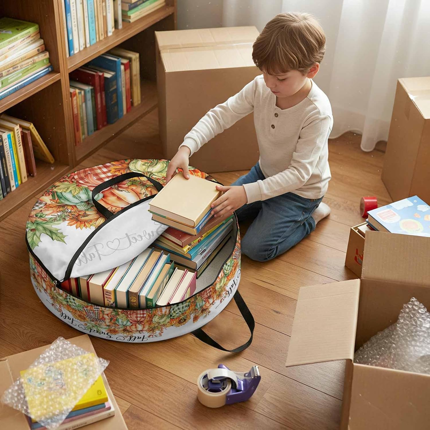 Reclaim Your Closet Space with the Round Storage Solution! Material: polyester Diameters: 24 inch, 30 inch, 36 inch Depth: 7 inches Package Includes: Round Storage Bag One Bag, Endless Possibilities: Whether you are swapping out your summer wardrobe, moving into a new dorm, or packing away holiday decorations, this bag has you covered. The circular design is uniquely suited for: Bedding: Comforters, quilts, sheet sets, and oversized pillows. Clothing: Winter coats, sweaters, and bulky ski gear. Home Decor: Holiday wreaths, garlands, and floral arrangements. Outdoor Gear: Camping blankets, sleeping bags, and beach towels. Dual Zippers: The high quality double zipper design allows the closet organizer to open wide from both sides, making it effortless to load and unload even the bulkiest comforters or wreaths. Reinforced Handles: Sturdy, reinforced handles are securely stitched to provide extra strength and a comfortable grip when carrying heavy loads or pulling the bag from under a bed. Clear Label Pocket: A transparent built-in label holder allows you to quickly identify the contents of each bag without ever having to unzip it, keeping your storage perfectly organized.